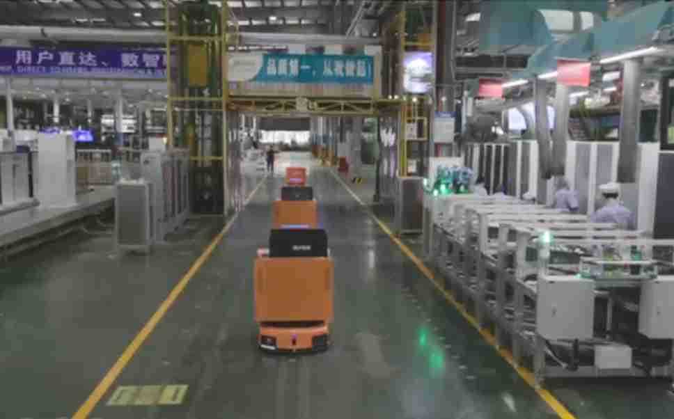 为车载冰箱物流配送打造的智能解决方案,,,包含产中物流通过潜伏举升AMR搬运至线边,,,,产后成品物流智能仓储,,,流程包含产中物流智能齐套入库,,,,线边安灯叫料AMR智能配送至线边,,,,成品入库、、出库,,,,通过无人堆高车机器人,,智能仓储管理替代人工作业管理,,,,实现更高存储、、、更高效率、、、更具柔性化的解决方案。。。